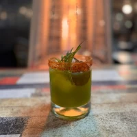 Cóctel de la casa en base a pisco macerado en hoja de coc...