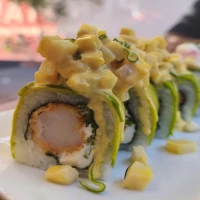 Camarón, queso, champiñon, envuelto en mozzarella y tempura