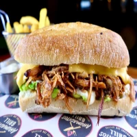 Pulled pork ahumado, palta, alioli y queso cheedar en pan...