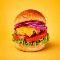Hamburguersa de 150grs, lechuga, tomate, cebolla morada, queso cheddar, mayo y ketchup.