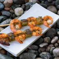 Brocheta de camarón a la parrilla.