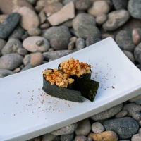 Crocante de wantan relleno de tsuyu shari y tártaro nikke...