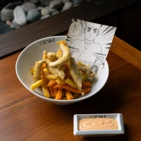 Mix de fritas y pez tempura con salsa